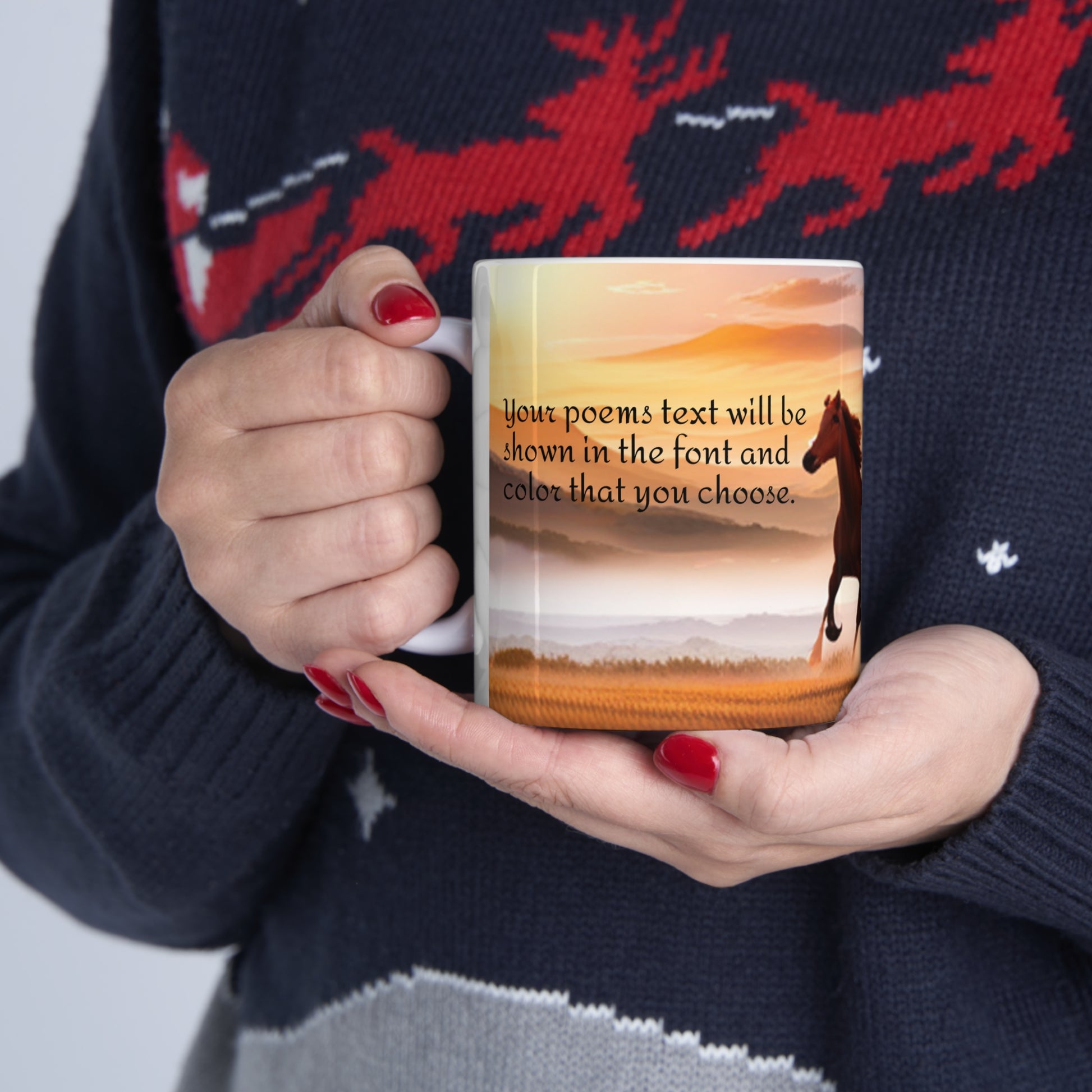 Warm-up with a nice cuppa out of this ceramic coffee mug that features your poem! After you make the purchase we will contact you by email so that you can provide us the details including how you want your mug created. We will customize the mug and provide you up to three edits to ensure that you are completely happy with the finished product.