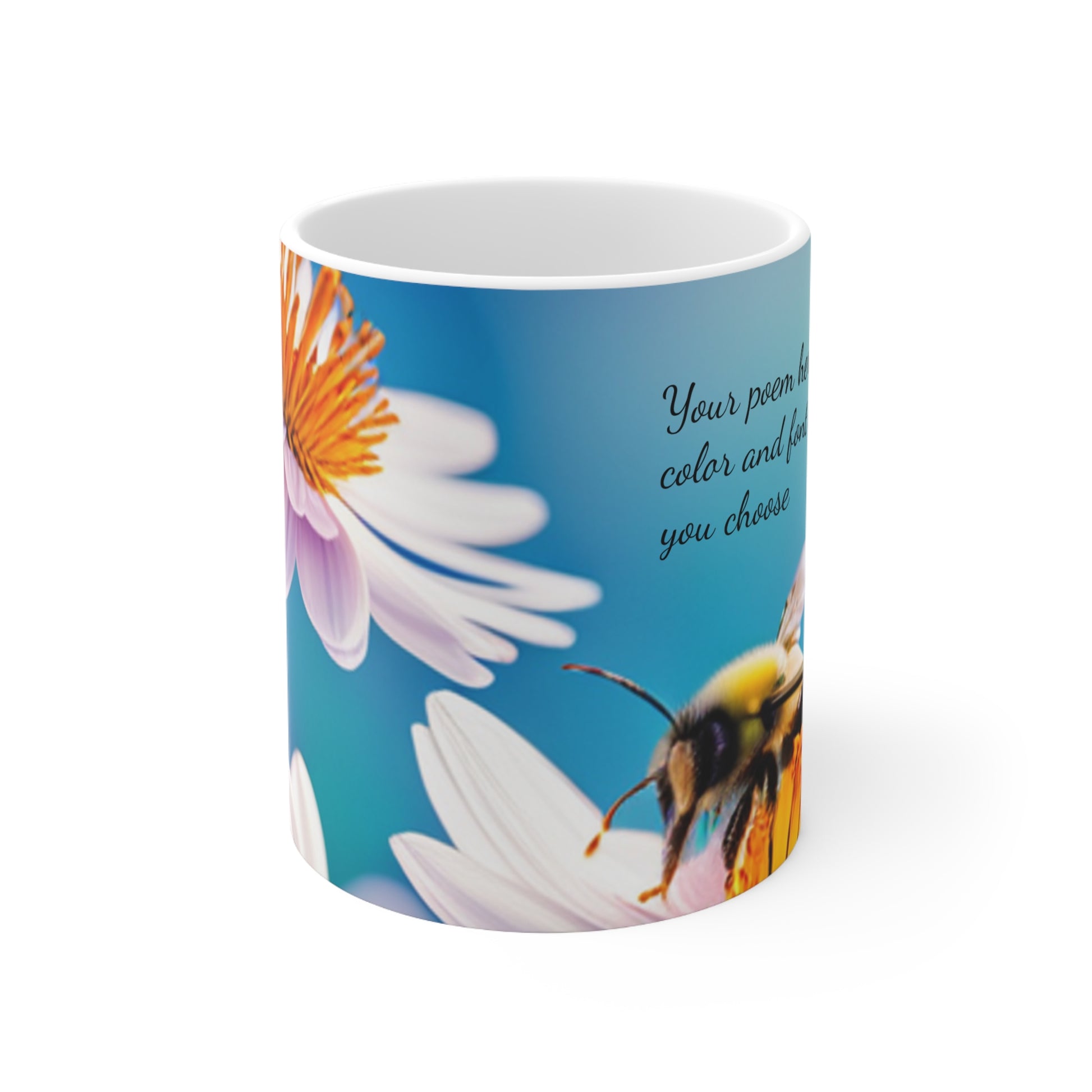 Warm-up with a nice cuppa out of this ceramic coffee mug that features your poem! After you make the purchase we will contact you by email so that you can provide us the details including how you want your mug created. We will customize the mug and provide you up to three edits to ensure that you are completely happy with the finished product.