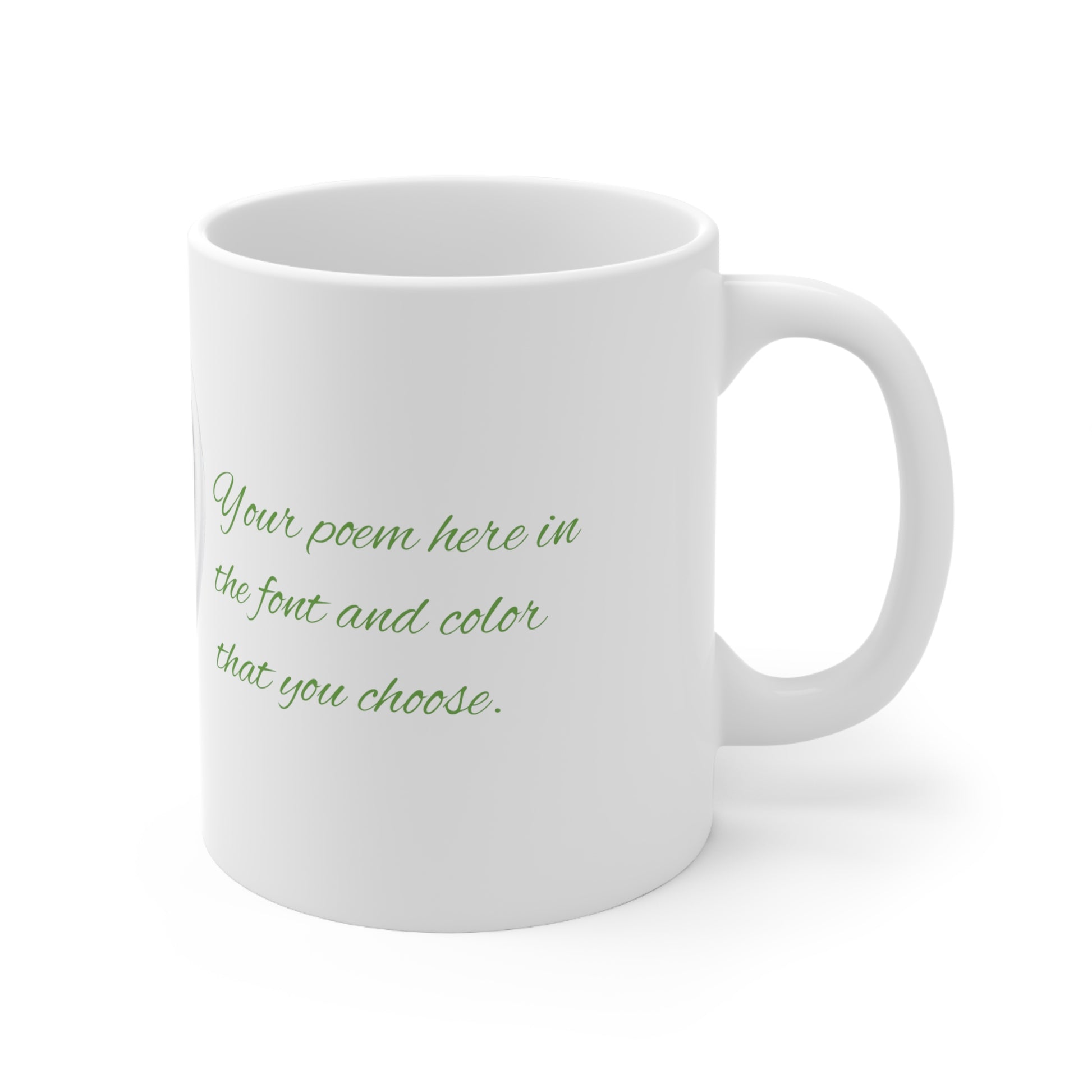 Warm-up with a nice cuppa out of this ceramic coffee mug that features your poem! After you make the purchase we will contact you by email so that you can provide us the details including how you want your mug created. We will customize the mug and provide you up to three edits to ensure that you are completely happy with the finished product.