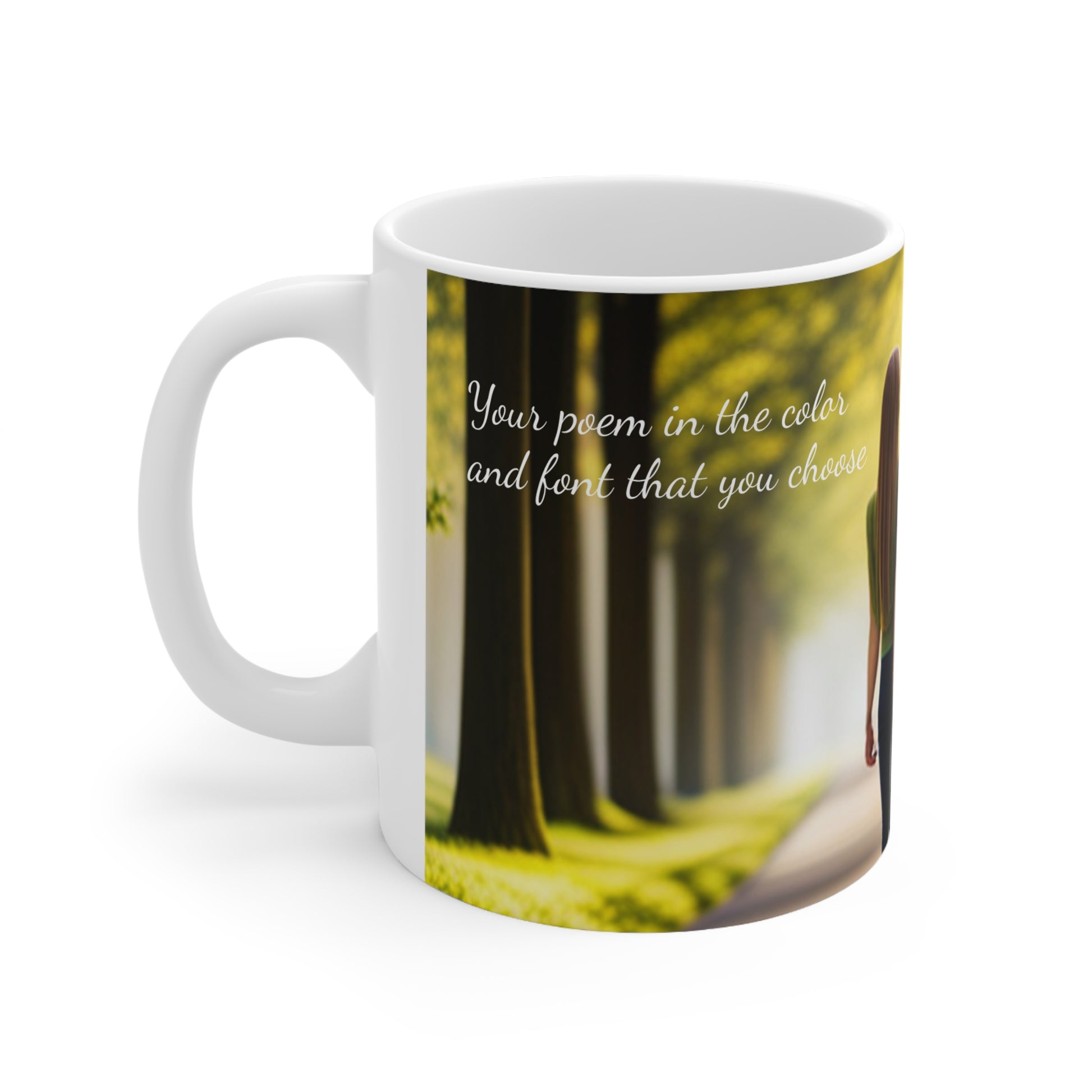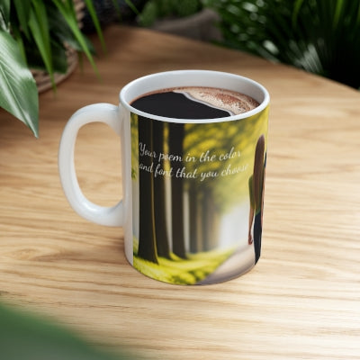 Warm-up with a nice cuppa out of this ceramic coffee mug that features your poem! After you make the purchase we will contact you by email so that you can provide us the details including how you want your mug created. We will customize the mug and provide you up to three edits to ensure that you are completely happy with the finished product.