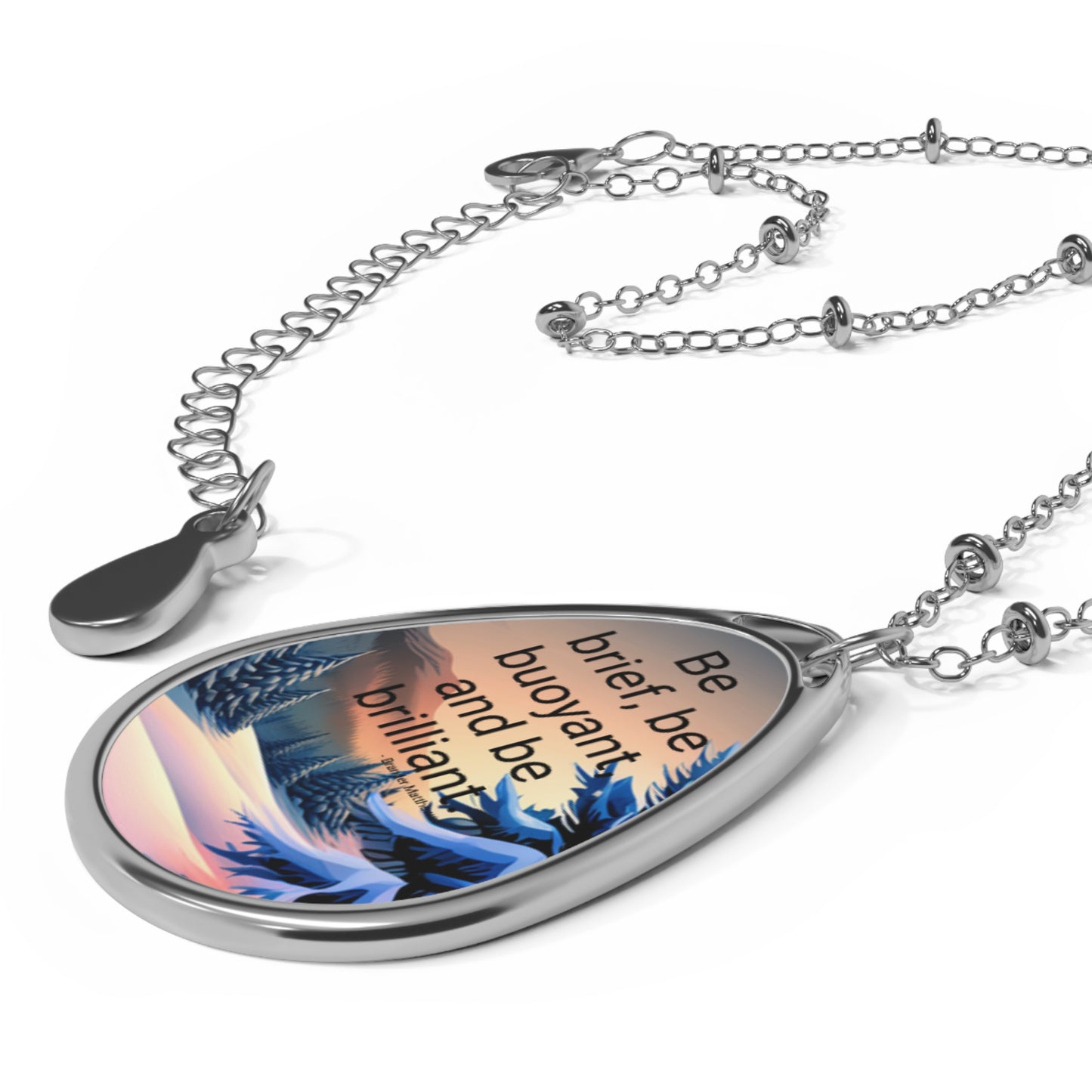 The pendant and its chain are made with robust brass material for dazzling looks that are long-lasting. The print panel is made with aluminum while the pendant itself comes in a unique shape of an ellipse.
