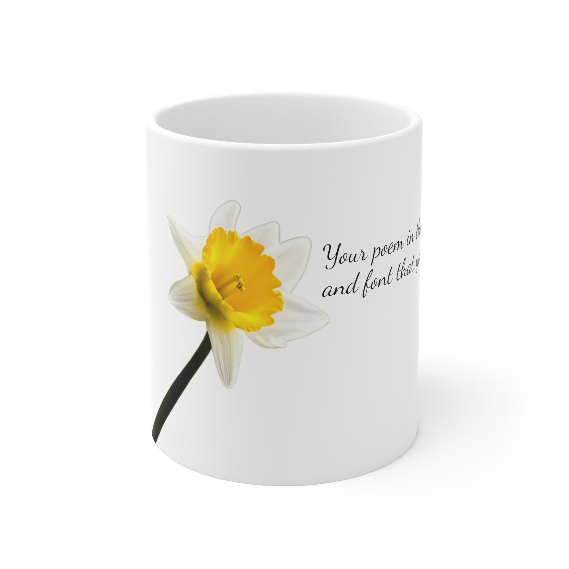 Warm-up with a nice cuppa out of this ceramic coffee mug that features your poem! After you make the purchase we will contact you by email so that you can provide us the details including how you want your mug created. We will customize the mug and provide you up to three edits to ensure that you are completely happy with the finished product.