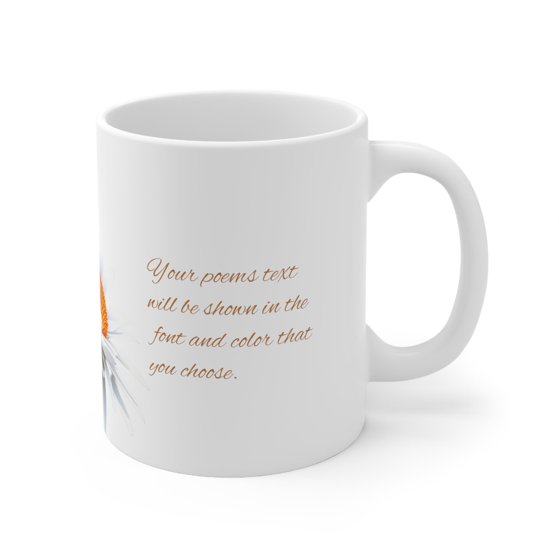 Warm-up with a nice cuppa out of this ceramic coffee mug that features your poem! After you make the purchase we will contact you by email so that you can provide us the details including how you want your mug created. We will customize the mug and provide you up to three edits to ensure that you are completely happy with the finished product.