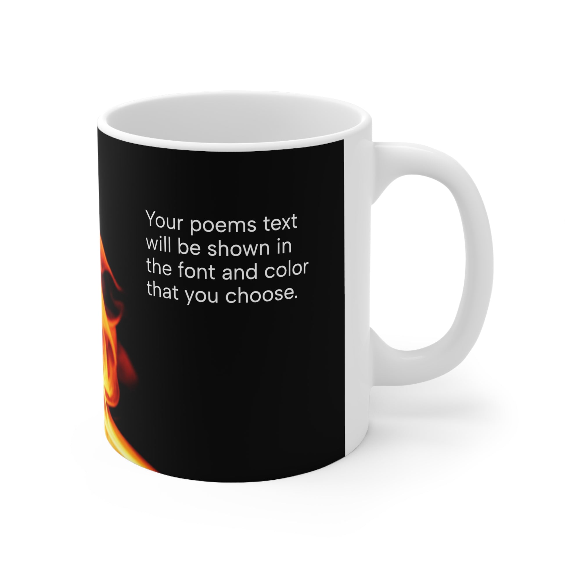 Warm-up with a nice cuppa out of this ceramic coffee mug that features your poem! After you make the purchase we will contact you by email so that you can provide us the details including how you want your mug created. We will customize the mug and provide you up to three edits to ensure that you are completely happy with the finished product.