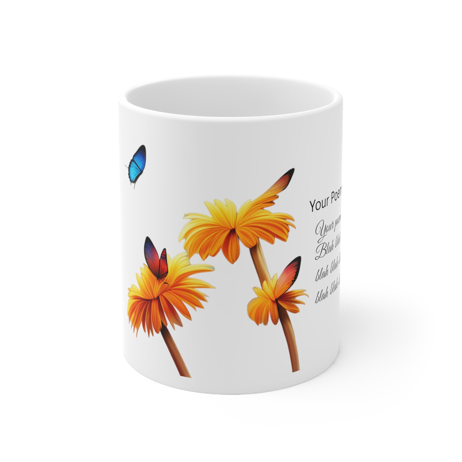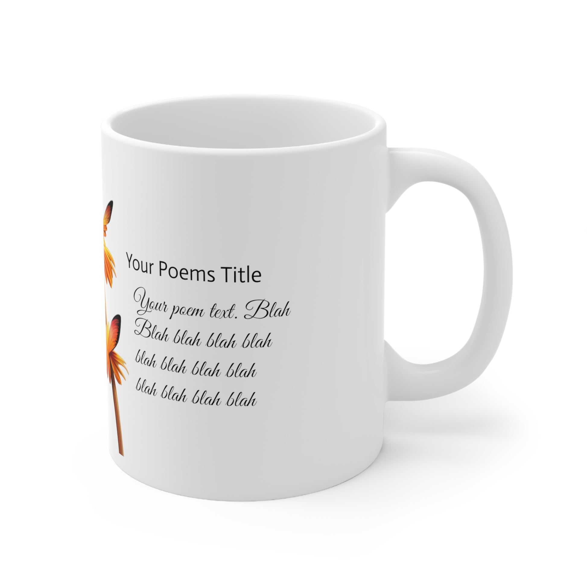 Warm-up with a nice cuppa out of this ceramic coffee mug that features your poem! After you make the purchase we will contact you by email so that you can provide us the details including how you want your mug created. We will customize the mug and provide you up to three edits to ensure that you are completely happy with the finished product.