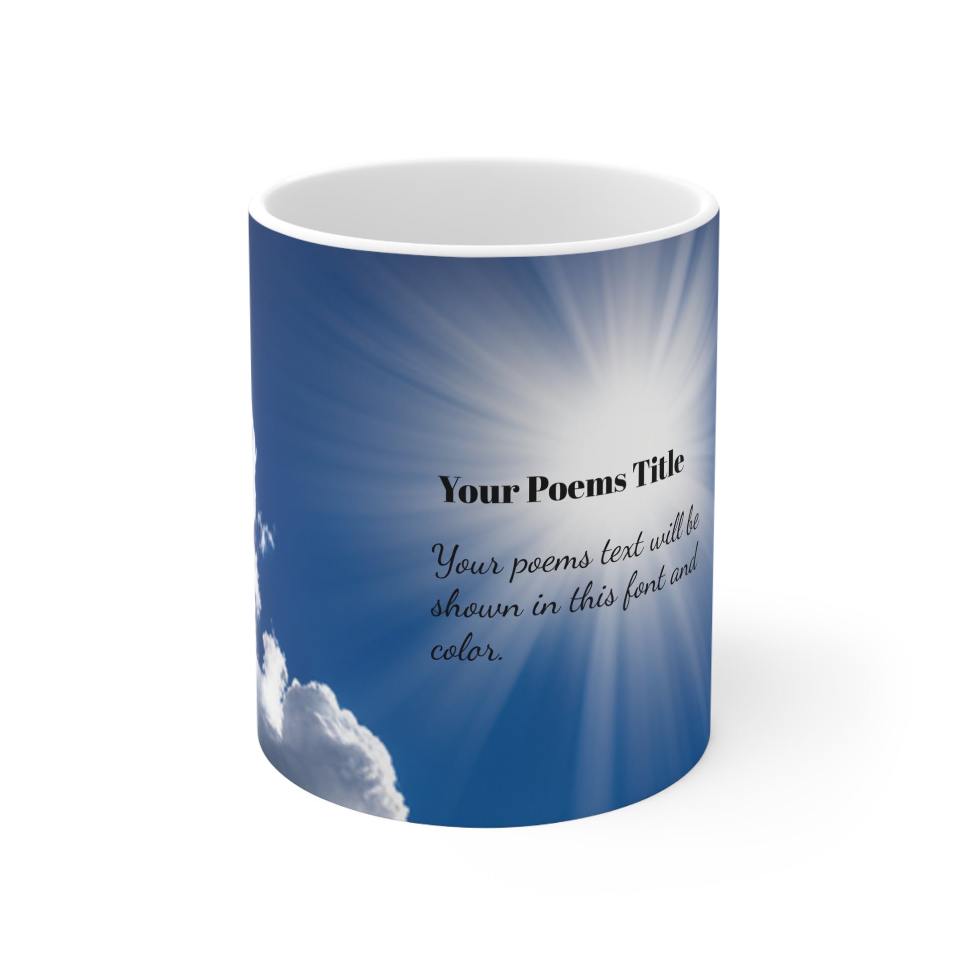 Warm-up with a nice cuppa out of this ceramic coffee mug that features your poem! After you make the purchase we will contact you by email so that you can provide us the details including how you want your mug created. We will customize the mug and provide you up to three edits to ensure that you are completely happy with the finished product.