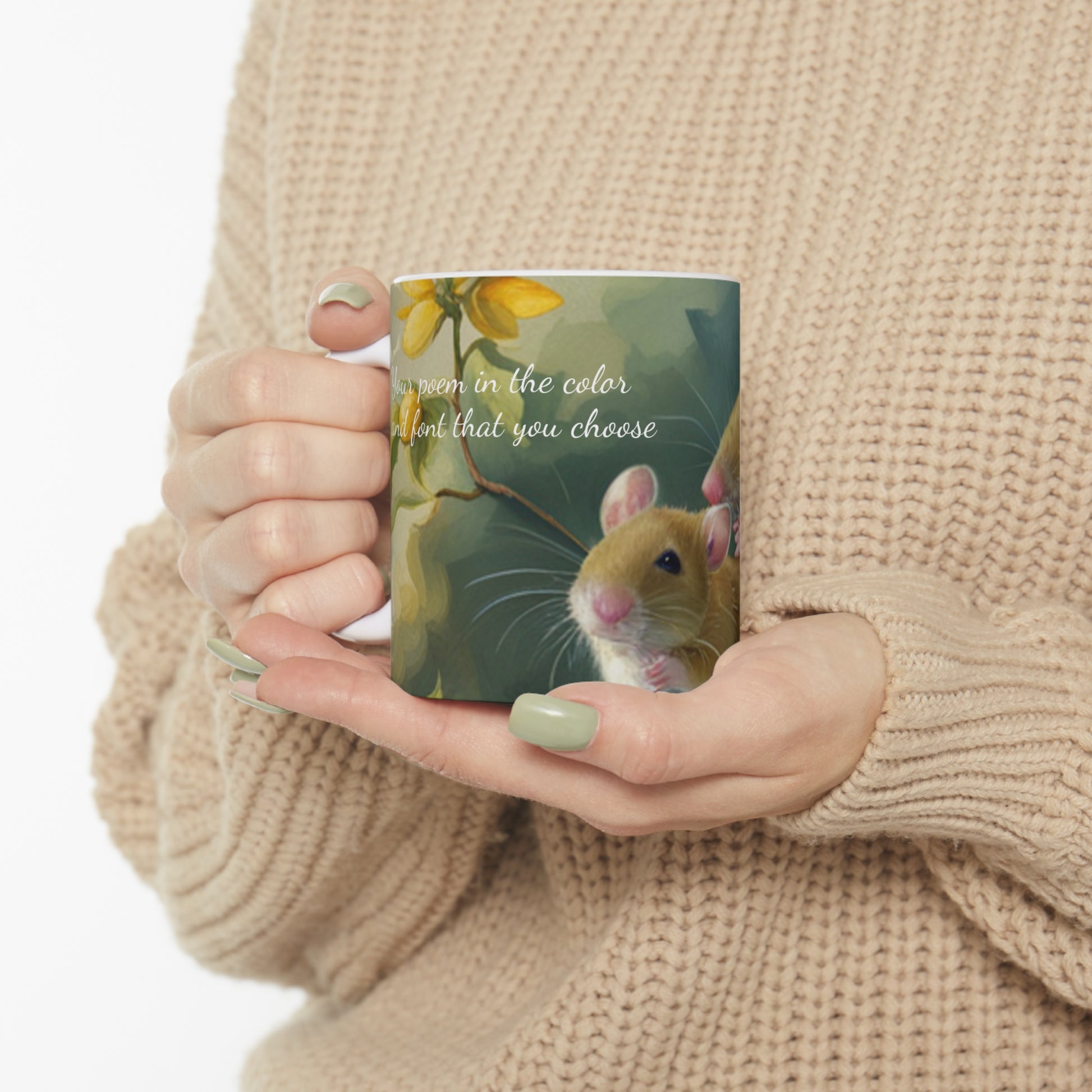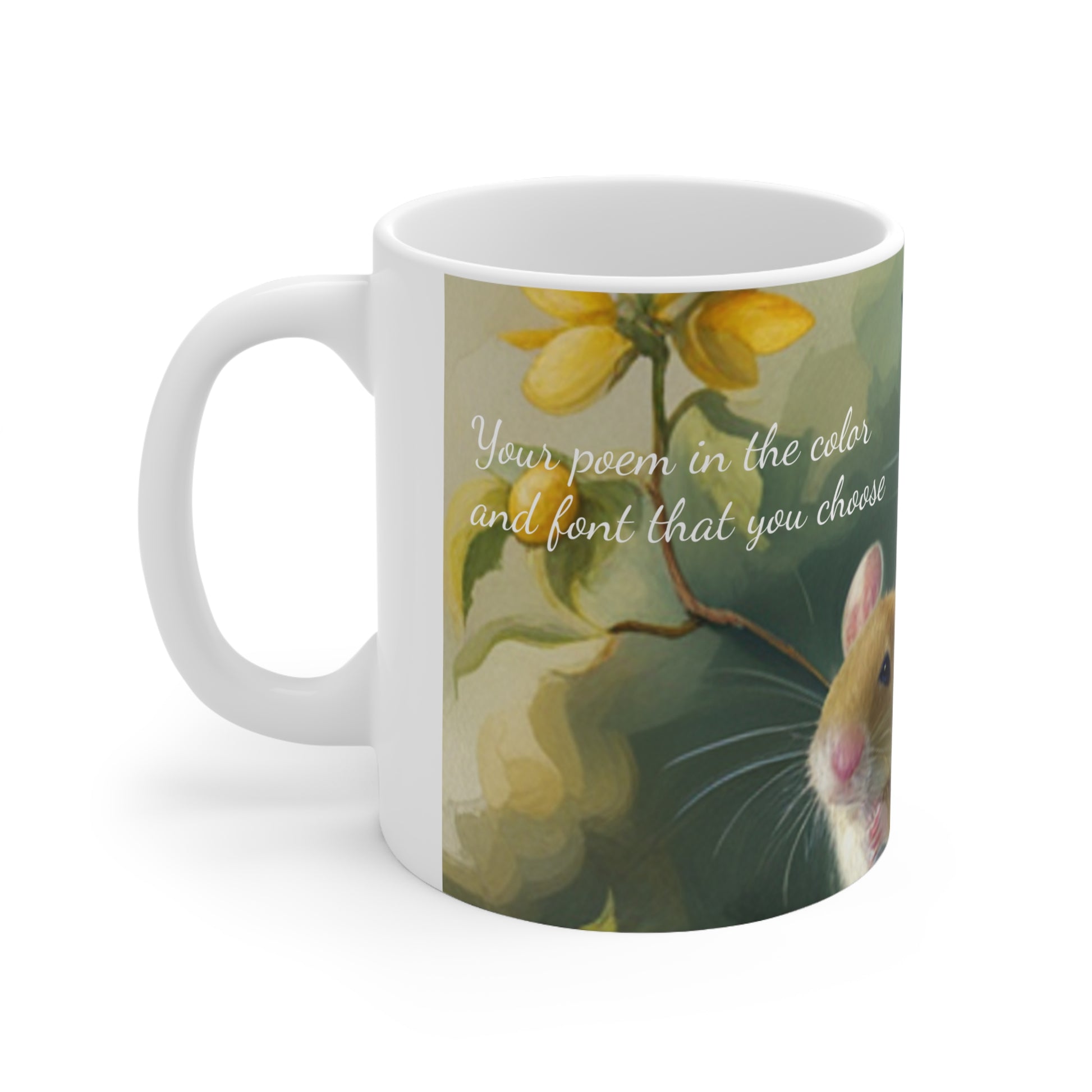 Warm-up with a nice cuppa out of this ceramic coffee mug that features your poem! After you make the purchase we will contact you by email so that you can provide us the details including how you want your mug created. We will customize the mug and provide you up to three edits to ensure that you are completely happy with the finished product.