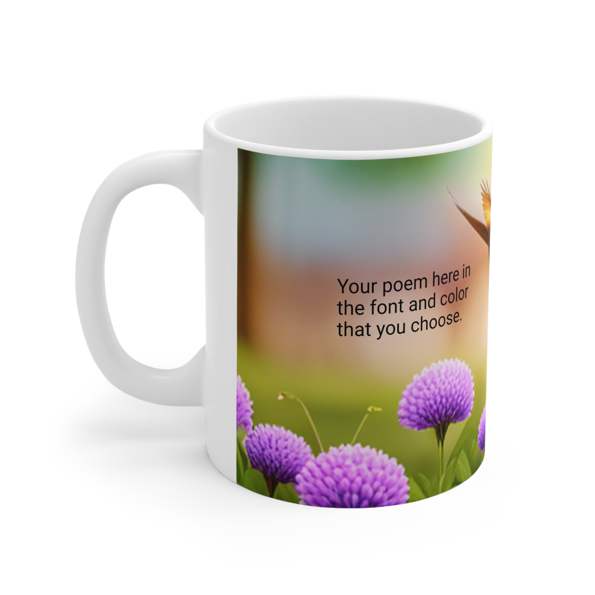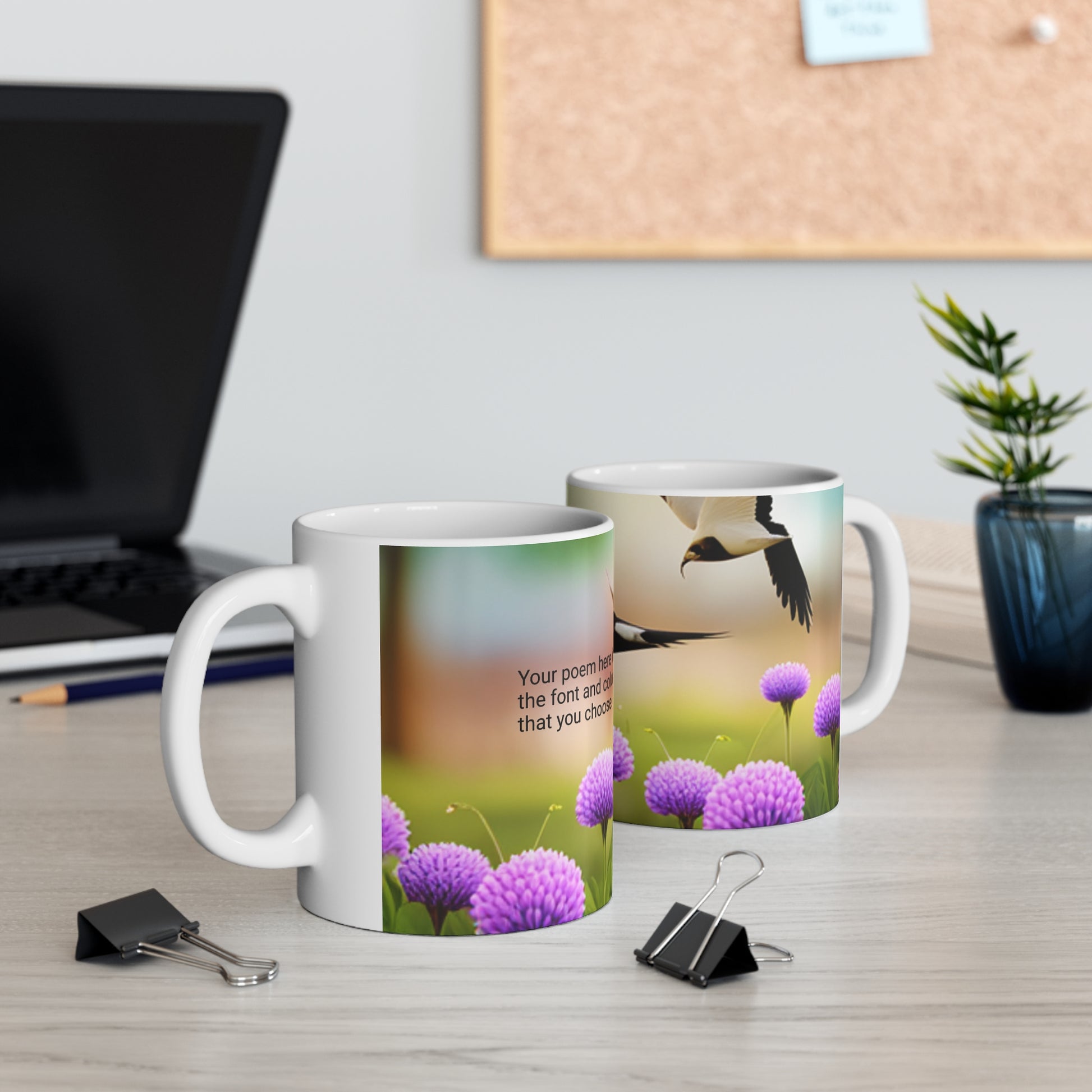 Warm-up with a nice cuppa out of this ceramic coffee mug that features your poem! After you make the purchase we will contact you by email so that you can provide us the details including how you want your mug created. We will customize the mug and provide you up to three edits to ensure that you are completely happy with the finished product.