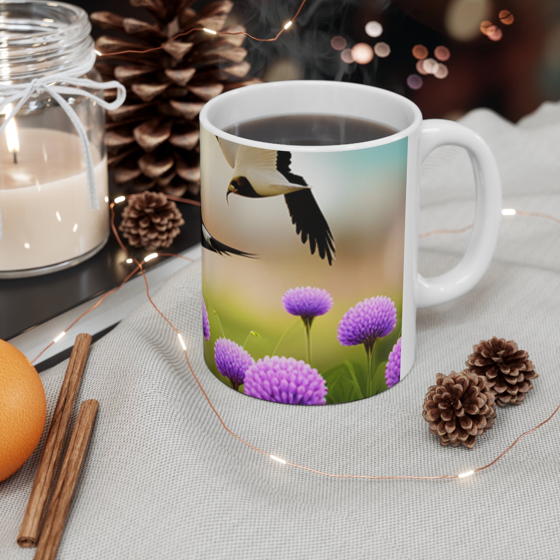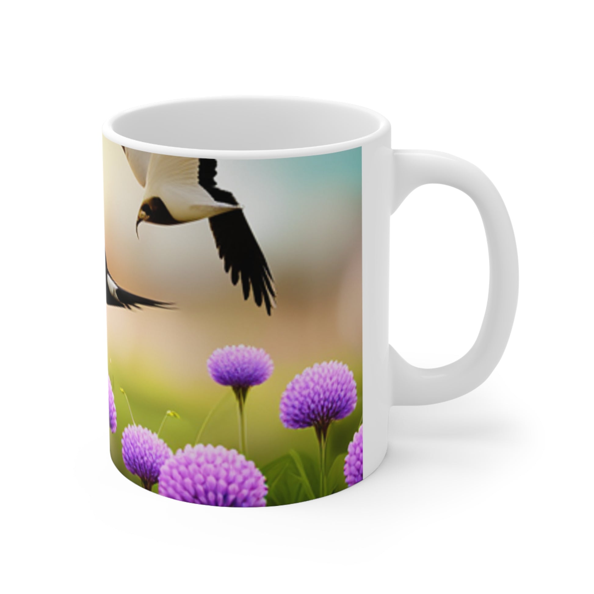 .: These 11oz (0.33 l) mugs are made with durable white ceramic.