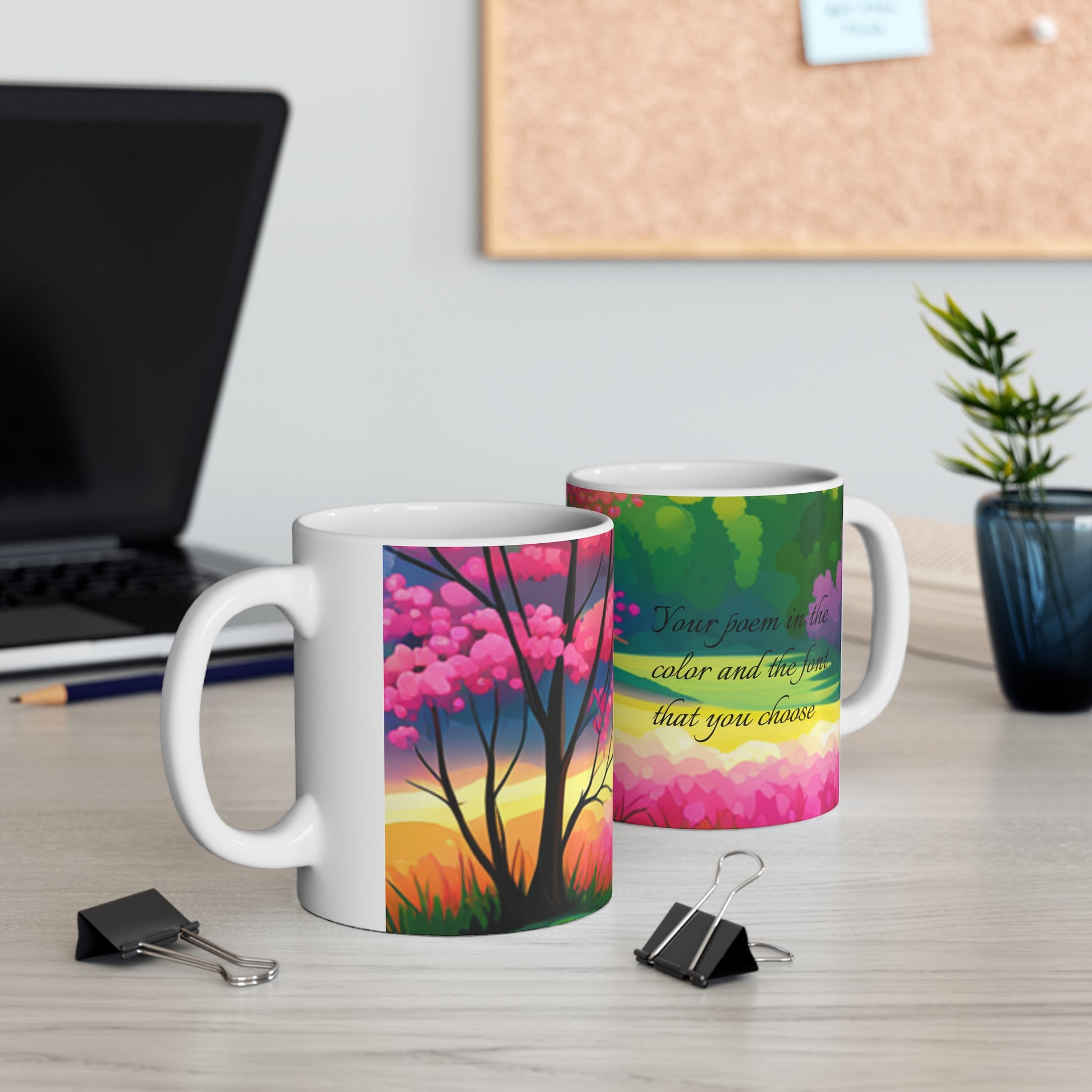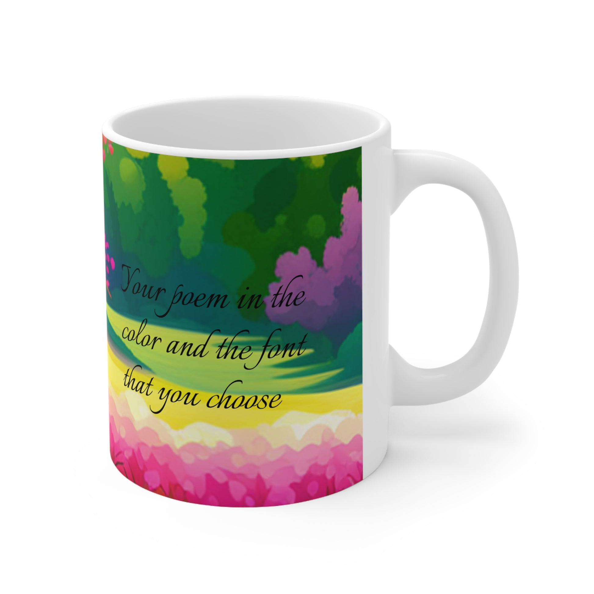 Warm-up with a nice cuppa out of this ceramic coffee mug that features your poem! After you make the purchase we will contact you by email so that you can provide us the details including how you want your mug created. We will customize the mug and provide you up to three edits to ensure that you are completely happy with the finished product.