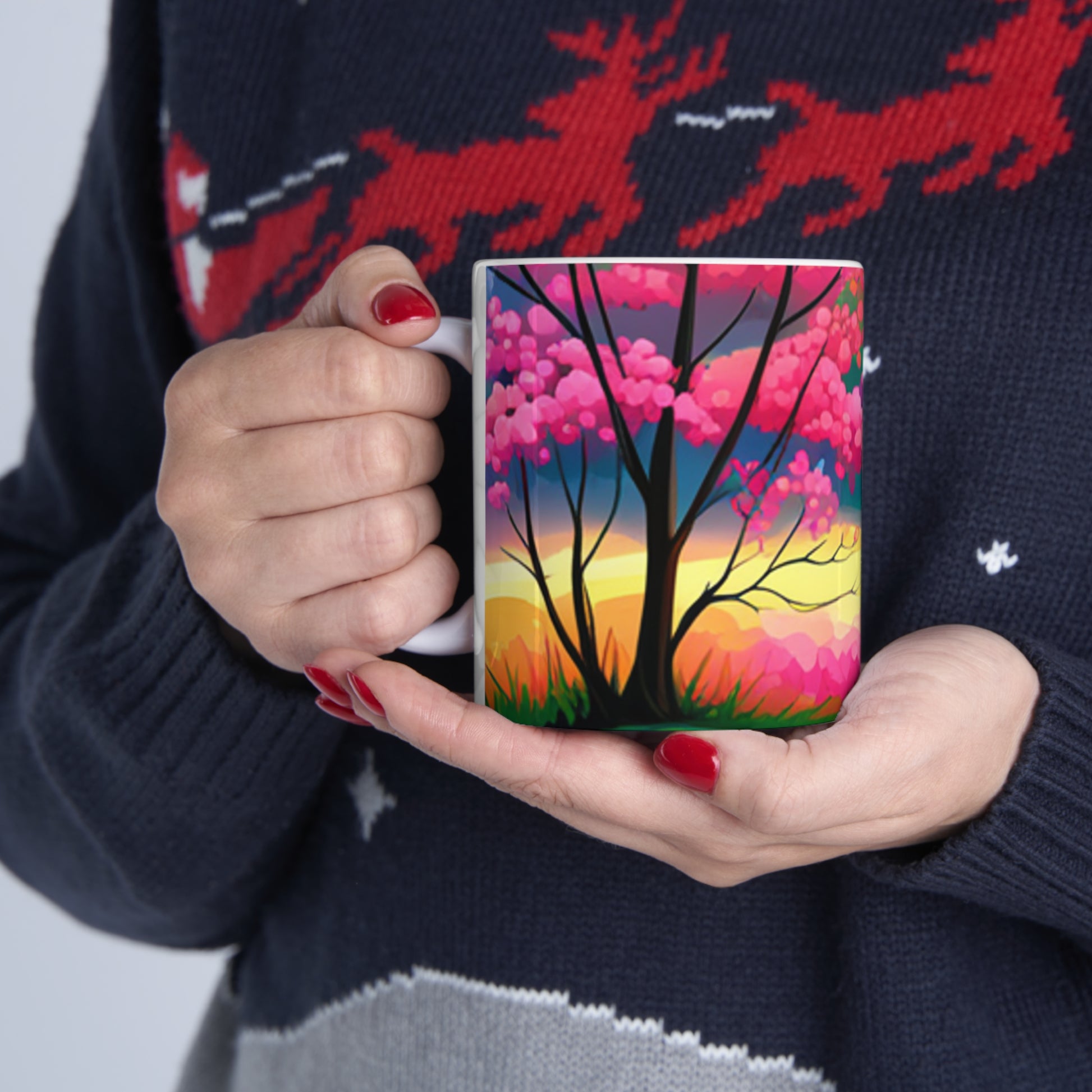 .: These 11oz (0.33 l) mugs are made with durable white ceramic.