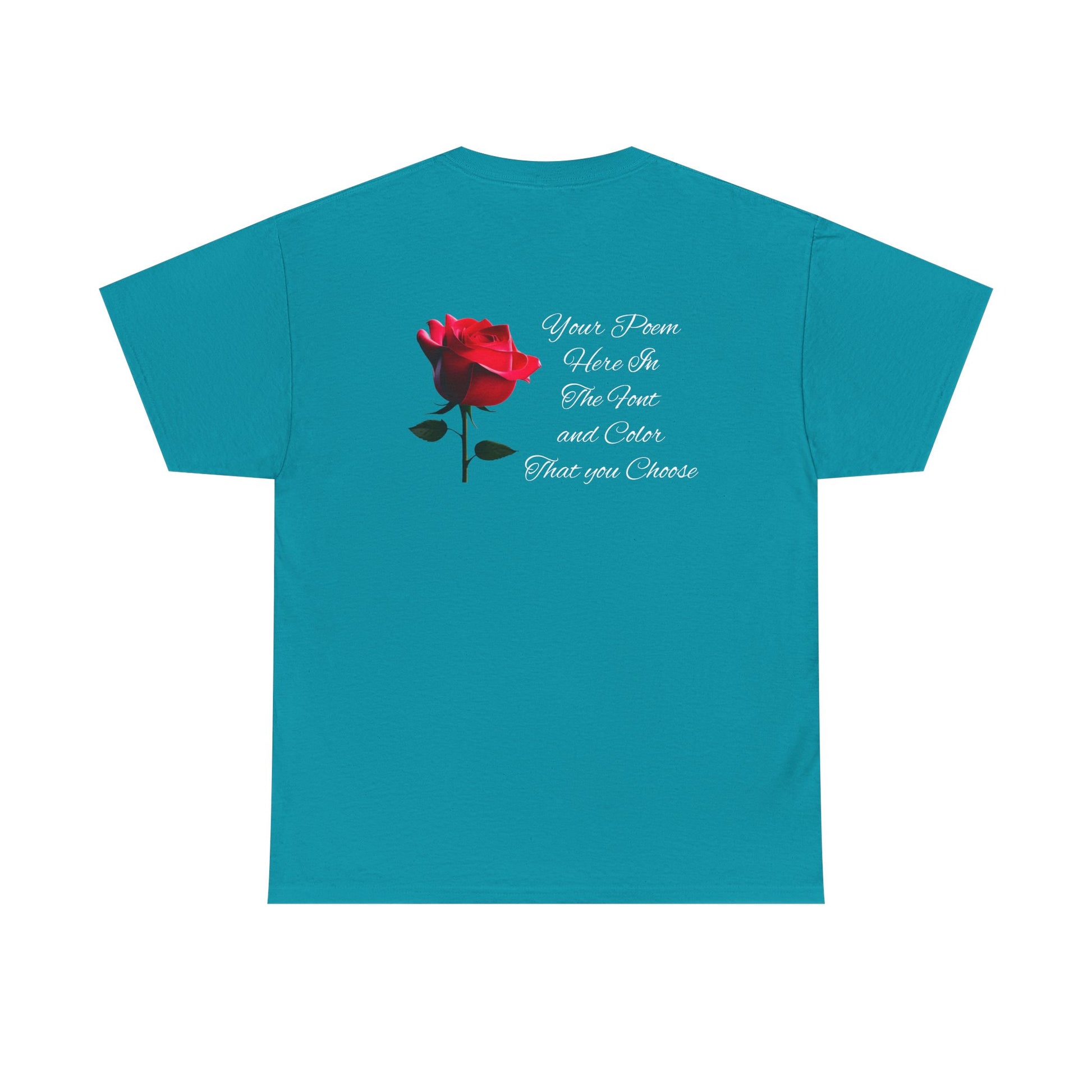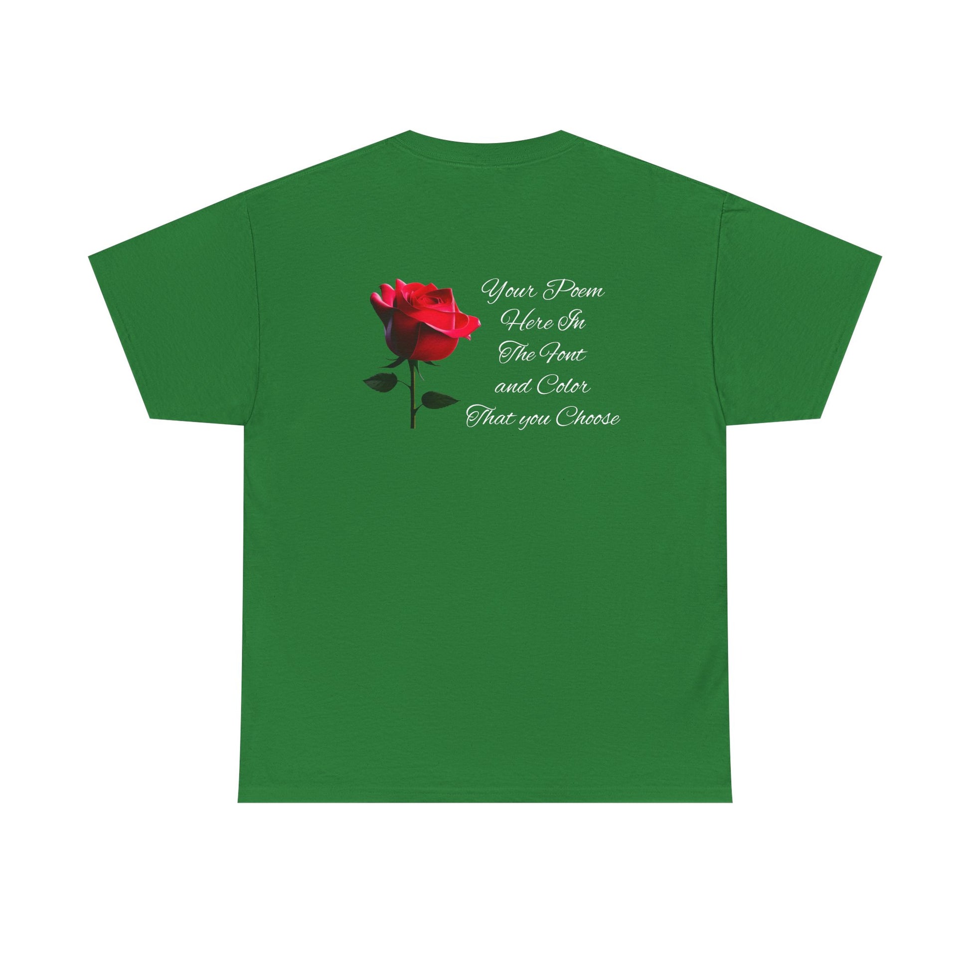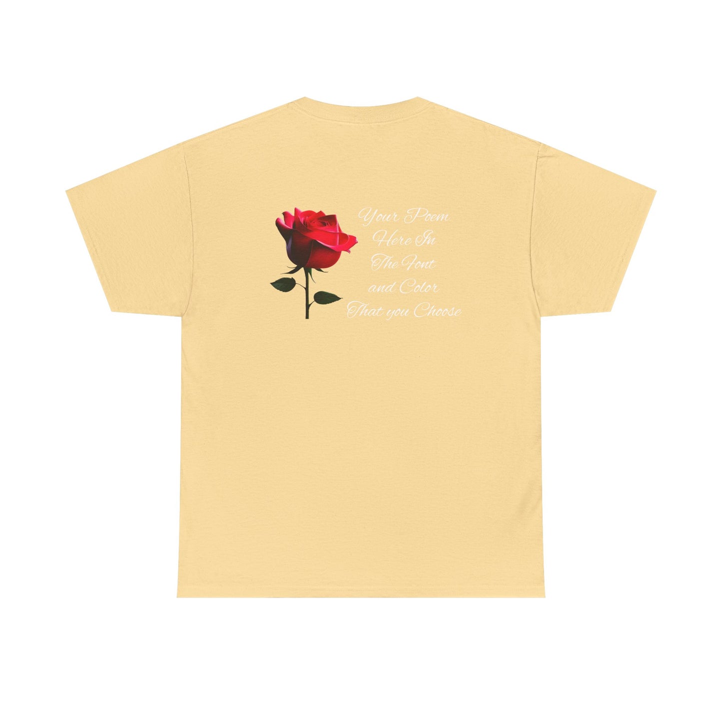 The unisex heavy cotton tee is the basic staple of any wardrobe. It is the foundation upon which casual fashion grows. Featuring the FanStory logo on the front and your poem on the back it's a one of a kind product!