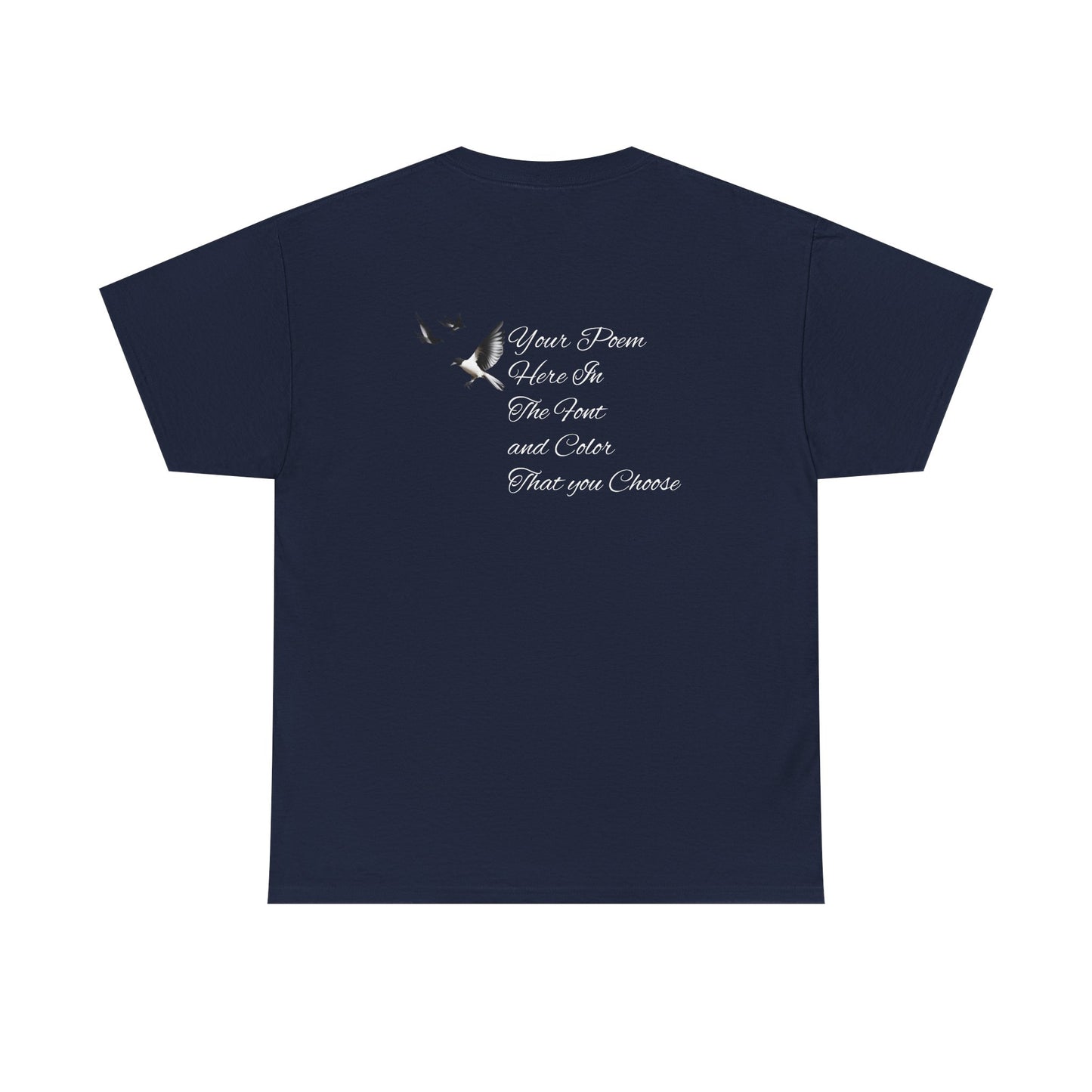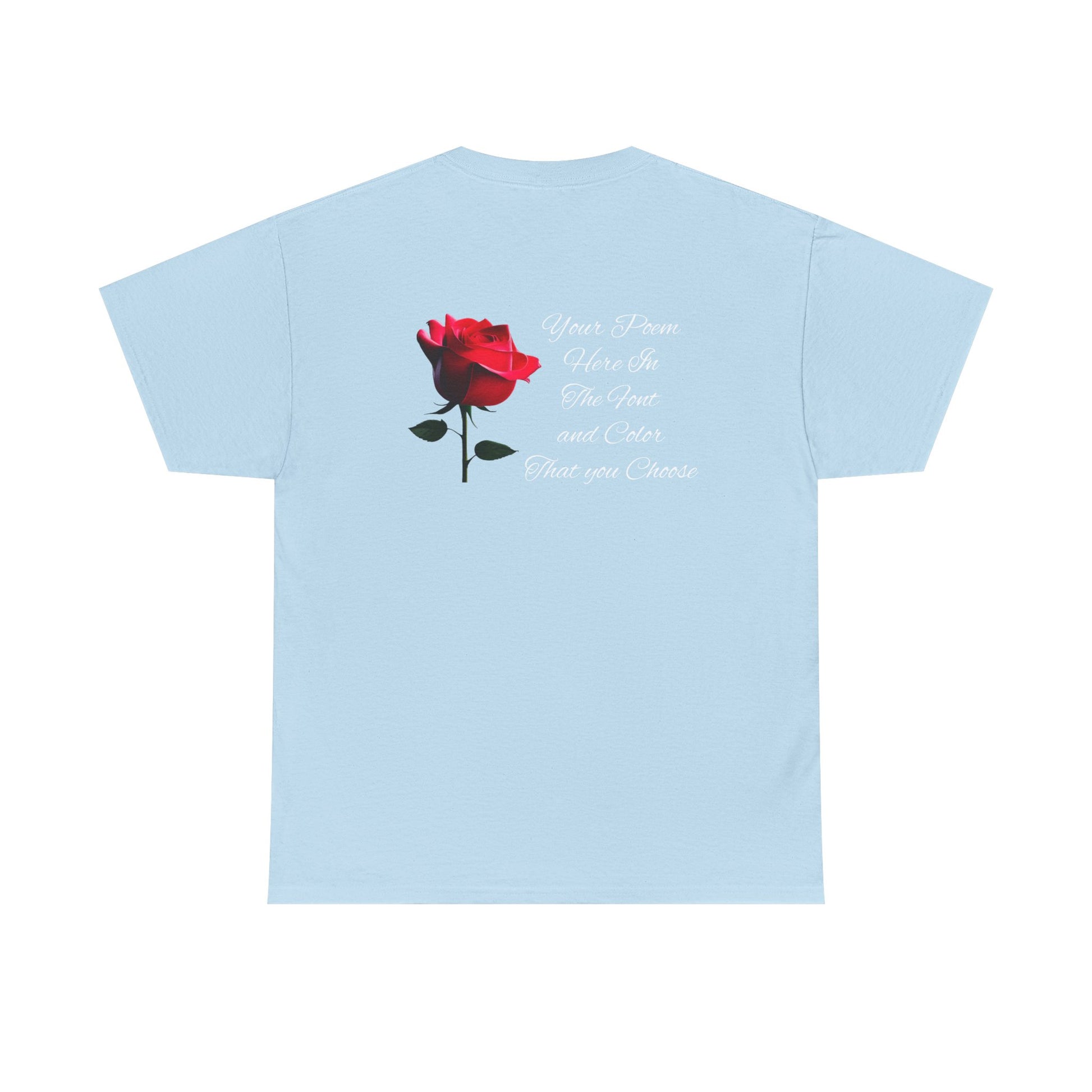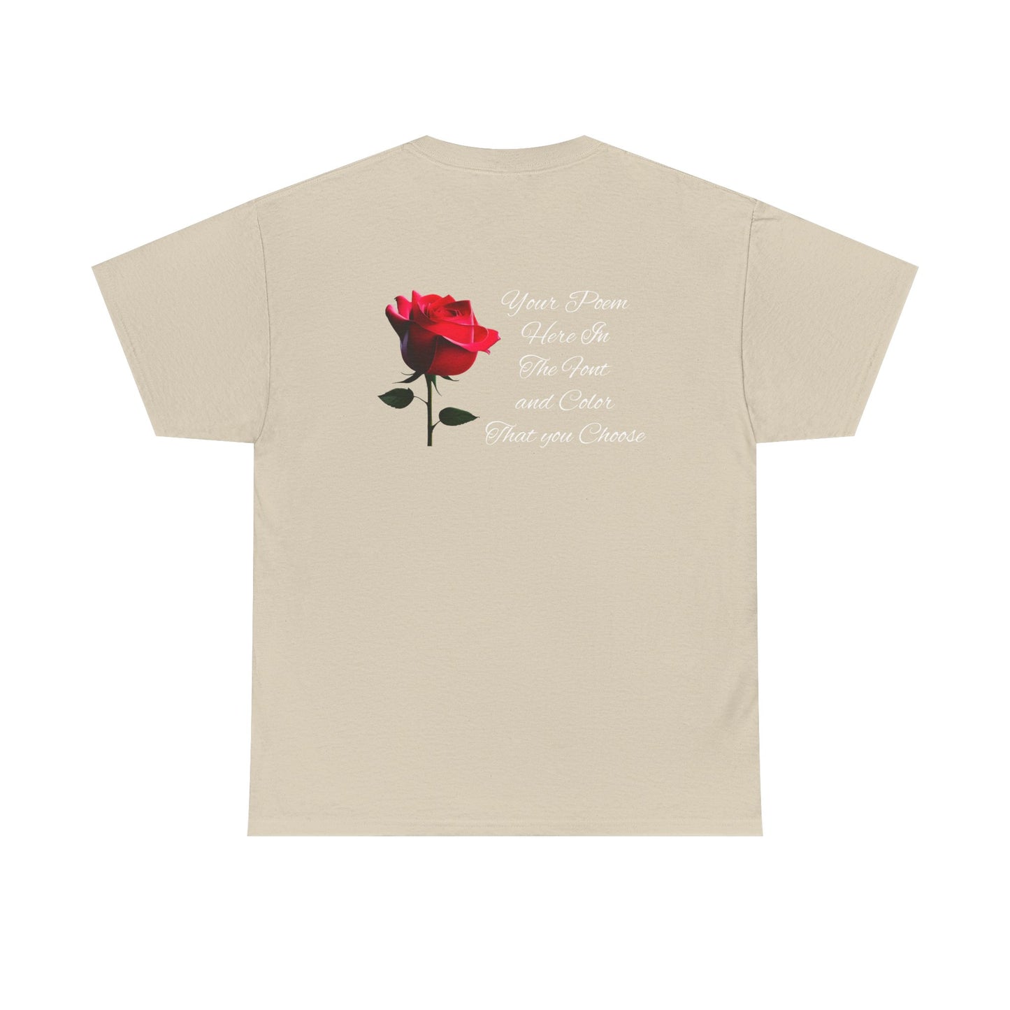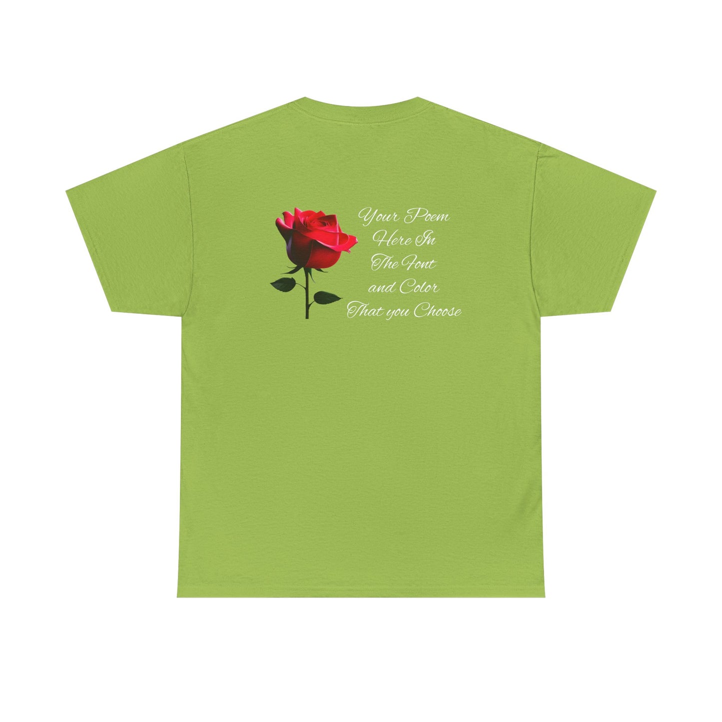 The unisex heavy cotton tee is the basic staple of any wardrobe. It is the foundation upon which casual fashion grows. Featuring the FanStory logo on the front and your poem on the back it's a one of a kind product!