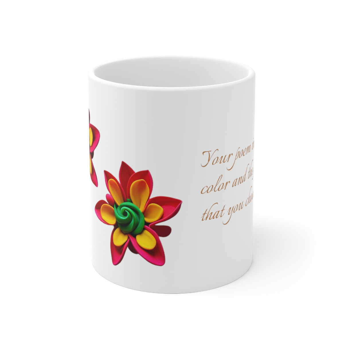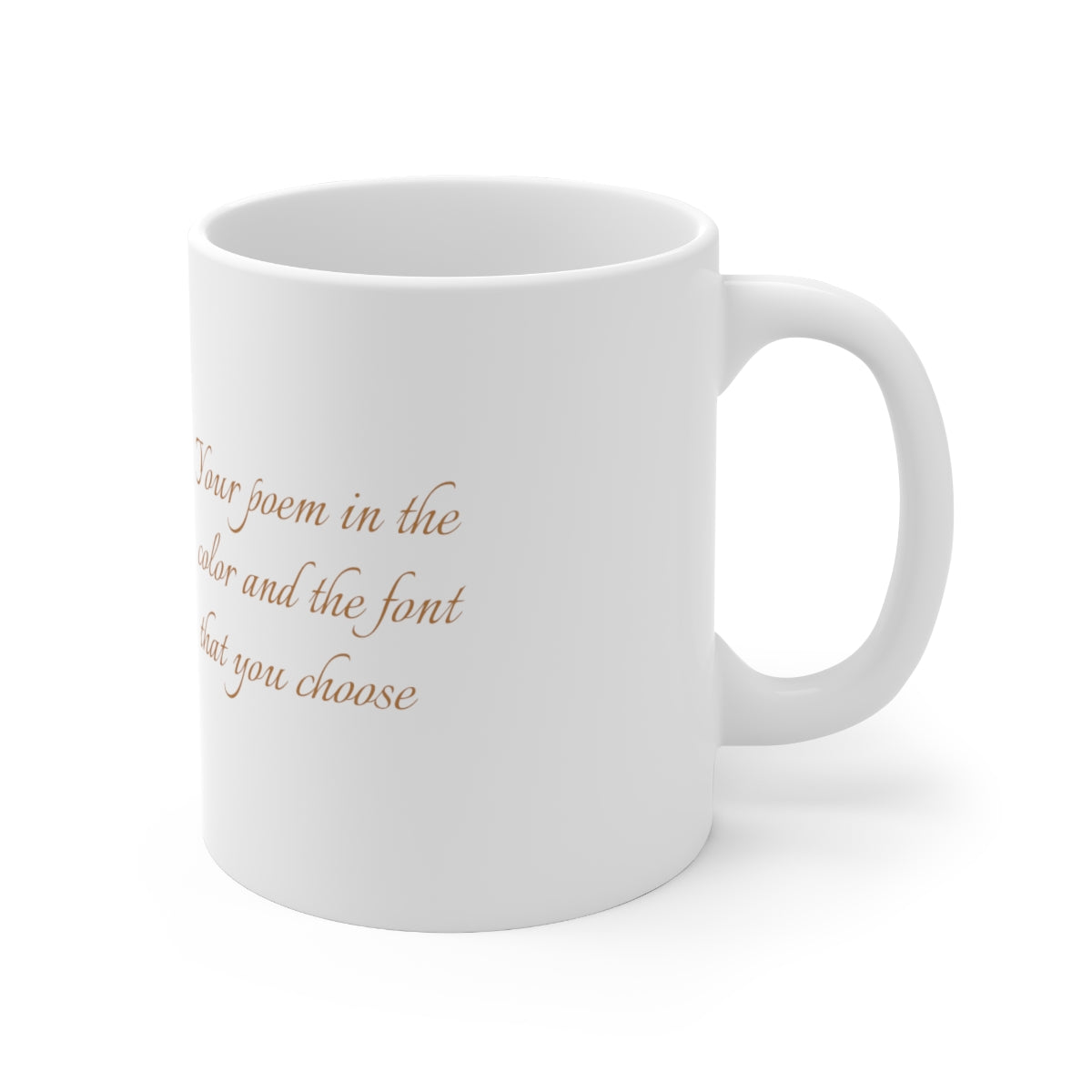 Warm-up with a nice cuppa out of this ceramic coffee mug that features your poem! After you make the purchase we will contact you by email so that you can provide us the details including how you want your mug created. We will customize the mug and provide you up to three edits to ensure that you are completely happy with the finished product.