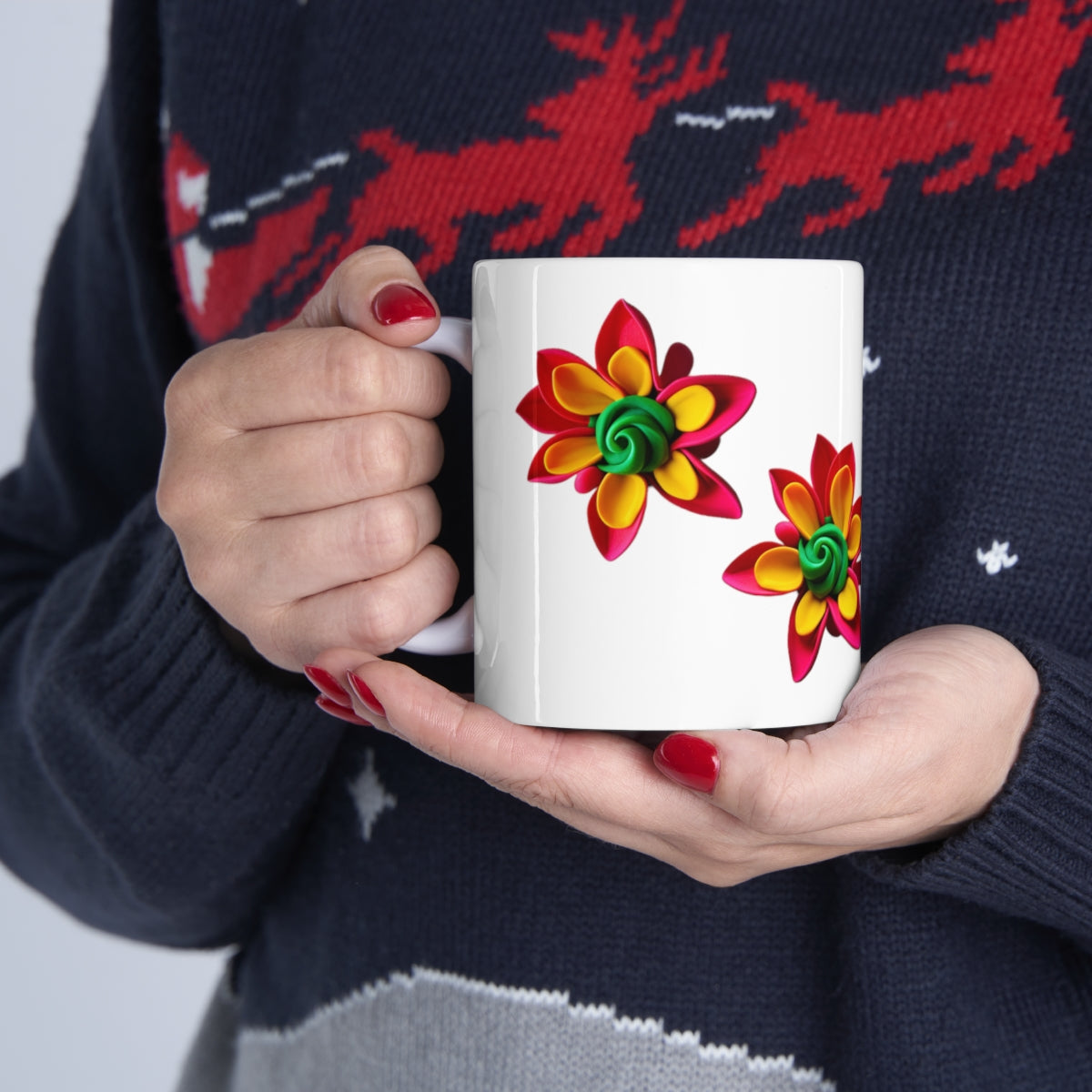 .: These 11oz (0.33 l) mugs are made with durable white ceramic.