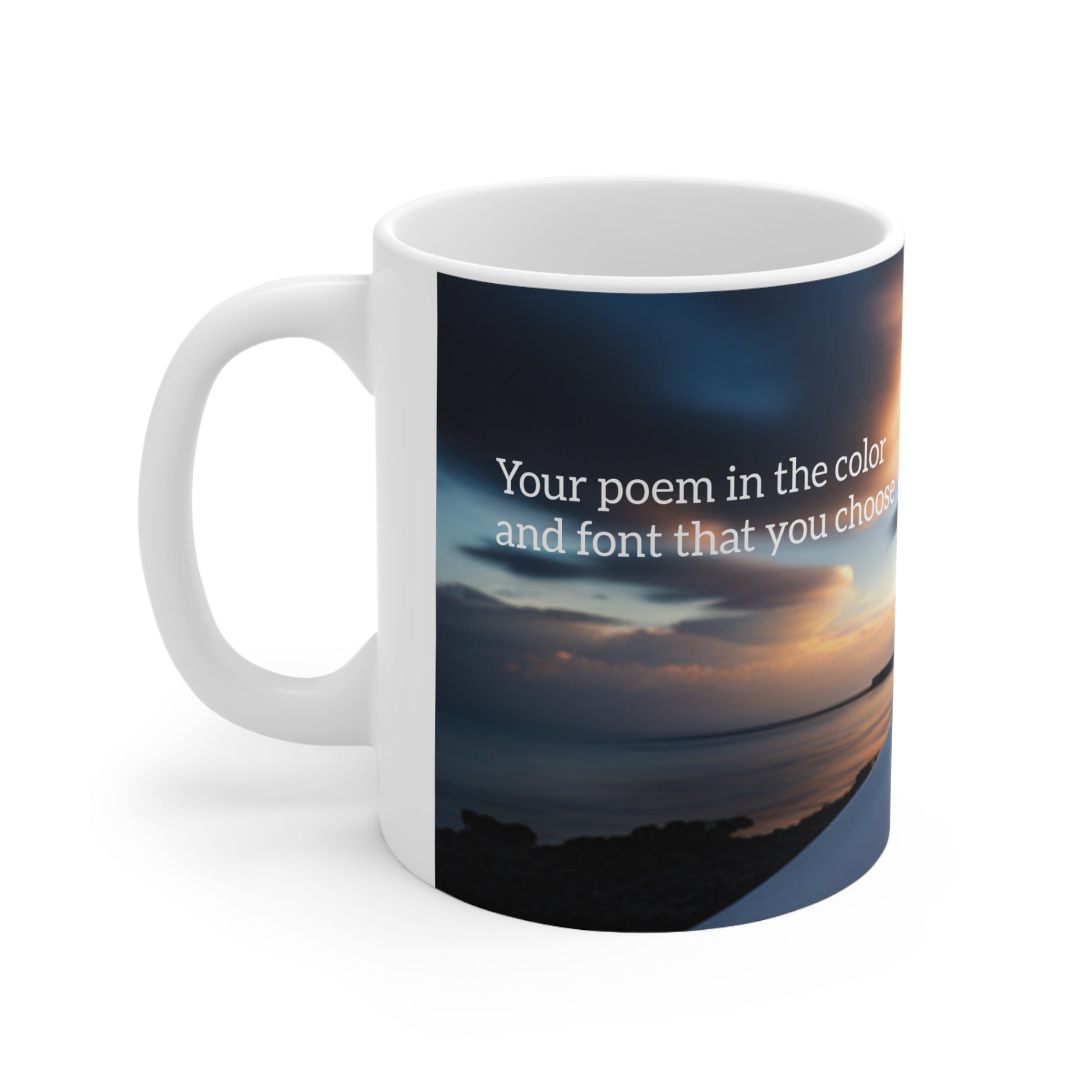Warm-up with a nice cuppa out of this ceramic coffee mug that features your poem! After you make the purchase we will contact you by email so that you can provide us the details including how you want your mug created. We will customize the mug and provide you up to three edits to ensure that you are completely happy with the finished product.