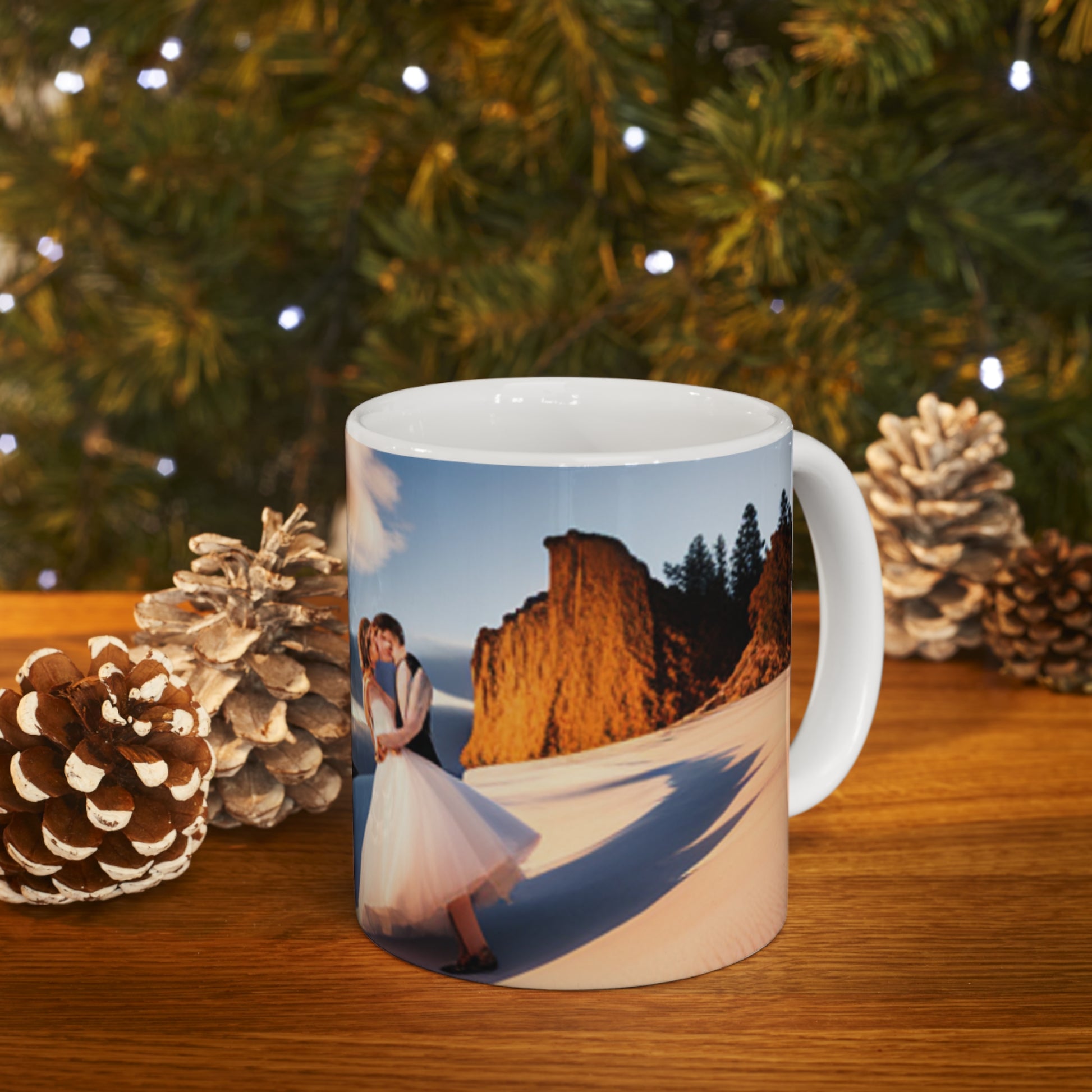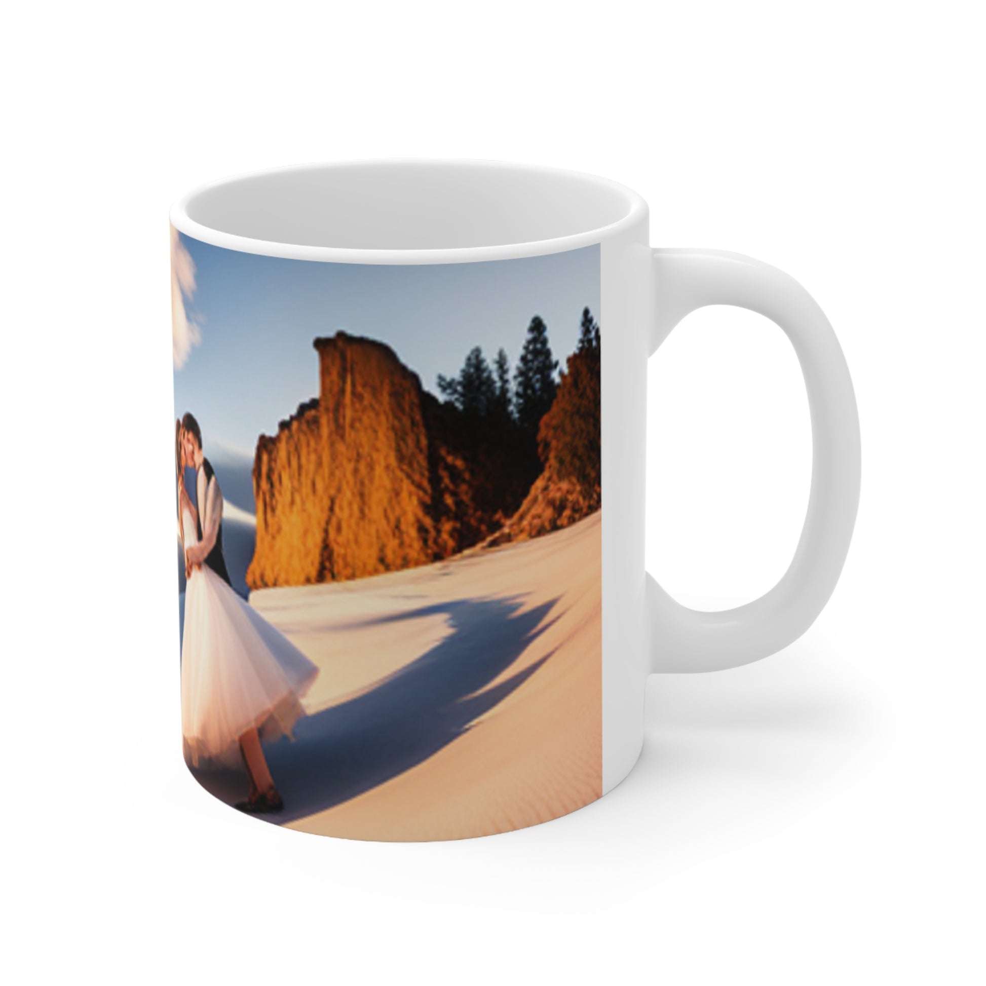 .: These 11oz (0.33 l) mugs are made with durable white ceramic.