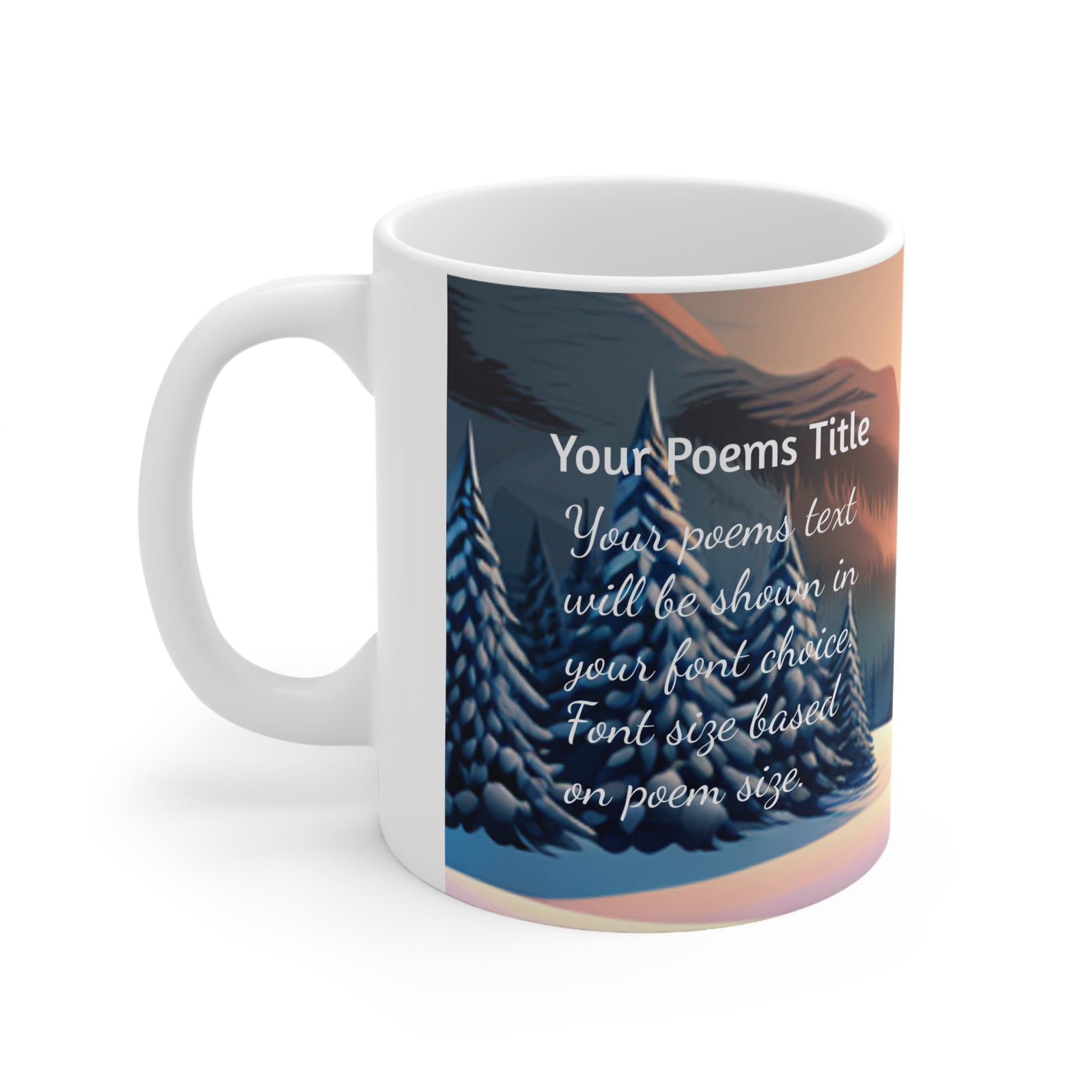 Warm-up with a nice cuppa out of this ceramic coffee mug that features your poem! After you make the purchase we will contact you by email so that you can provide us the details including how you want your mug created. We will customize the mug and provide you up to three edits to ensure that you are completely happy with the finished product.
